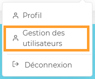 Cliquez sur le picto de la grille en haut à droite de votre interface. Cela ouvre le menu déroulant contenant Gestion des utilisateurs.